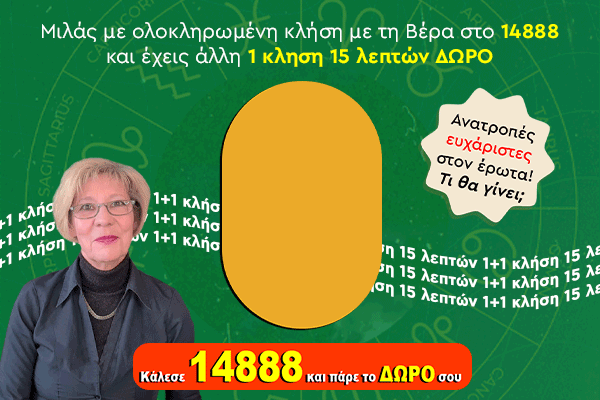 ΜΑΘΕ ΤΙ ΥΠΕΡΟΧΟ ΣΕ ΠΕΡΙΜΕΝΕΙ ΣΤΑ ΕΡΩΤΙΚΑ ΜΕ 1+1 ΚΛΗΣΗ 15 ΛΕΠΤΩΝ ΕΝΤΕΛΩΣ ΔΩΡΕΑΝ για την πρόβλεψή σου ΜΟΝΟ ΓΙΑ ΣΗΜΕΡΑ από τη ΣΥΓΚΛΟΝΙΣΤΙΚΗ ΤΑΡΩΜΑΝΤΗ ΒΕΡΑ!!