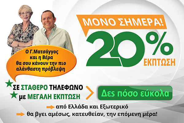 ΕΚΠΤΩΣΗ 20% στην πρόβλεψη με ΑΓΟΡΑ ΧΡΟΝΟΥ ΟΜΙΛΙΑΣ και ΜΟΝΟ από 0,72 €/1΄ ΜΟΝΟ για ΣΗΜΕΡΑ για ΕΛΛΑΔΑ και ΕΞΩΤΕΡΙΚΟ!